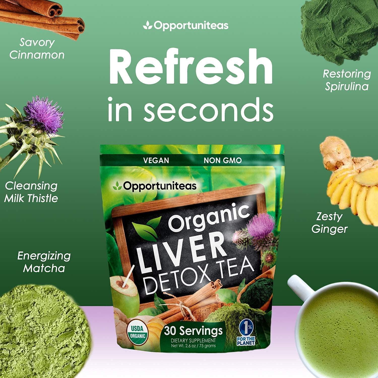 Organic Liver Detox Tea Matcha Green Tea Milk Thistle Coconut Water Spirulina Ginger Cinnamon Natural Cleanse To Boost Energy Feel Better Liver Care Support Supplement Vegan Non Gmo